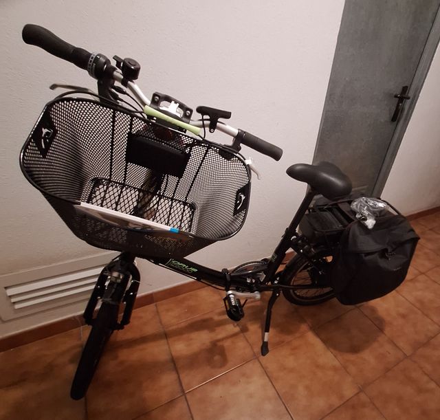 Detalles del productoBicicleta eléctrica ORUS E2000 con cesta delantera y portaequipajes trasero.