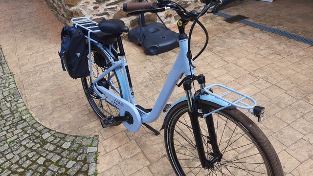 bicicleta nueva con 400 km , muy cómoda, con motor Bafang y bateria de 17 amperios con cesta delante y detrás, se regalan alforjas , y casco