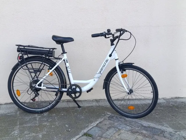 Detalles del productoBicicleta eléctrica de paseo en color blanco. Ideal para desplazamientos urbanos.