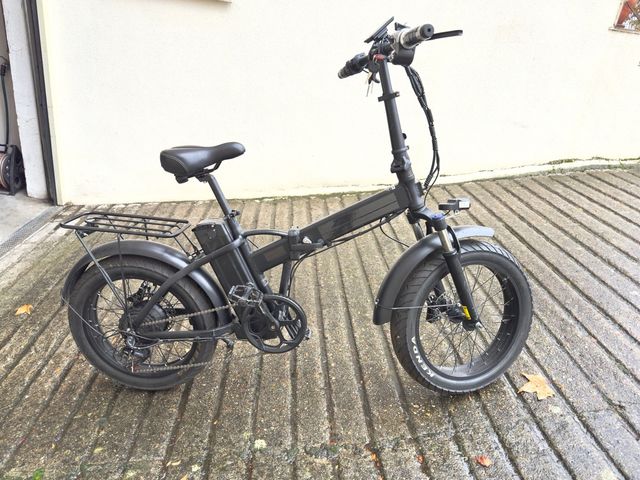 Bicicleta eléctrica plegable en color negro. Ideal para finca privada . Con las ruedas nuevas. Frenos de disco - Diseño plegable. - Color negro.