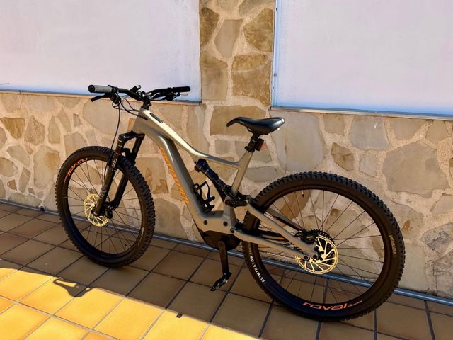 Bicicleta eléctrica Specialized Levo Comp en talla XL. Color tierra con detalles en naranja.