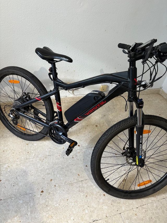 WAYSCRAL Anyway E200 . Esta bicicleta cuenta con un cuadro de aluminio para un peso ligero, ruedas de 27,5" para el rendimiento. Está equipada con una transmisión "Shimano Altus" de 8 velocidades. El sistema de frenado consta de un freno de disco mecánico. Su motor trasero de 250 W y batería de litio SAMSUNG 36 V 13 Ah te permitirán disfrutar de paseos de entre 60 y 80 km. Su pantalla LCD te permite gestionar los 6 niveles de asistencia, así como funciones de kilometraje, carga de smartph