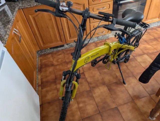 Detalles del productoBicicleta eléctrica plegable de color amarillo, modelo Youin Valencia. Se encuentra en perfecto estado.