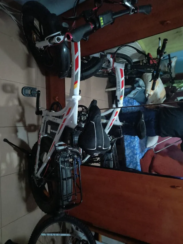Detalles del productoBicicleta eléctrica Yovy en color blanco con detalles en rojo y gris. Ideal para desplazamientos urbanos.