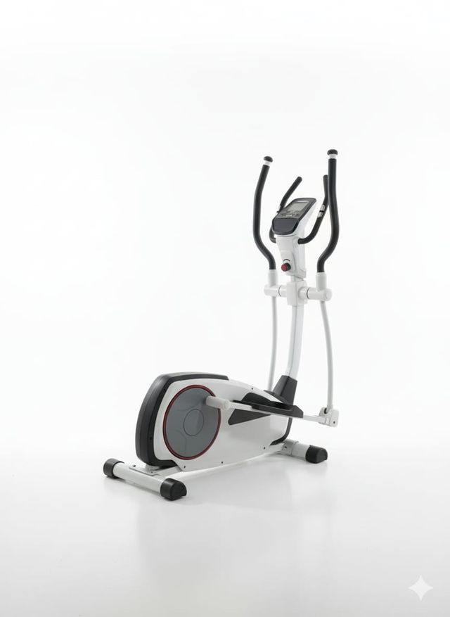 Detalles del productoBicicleta elíptica con un diseño moderno en blanco y negro.