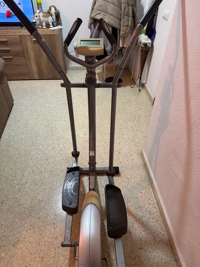 Detalles del productoBicicleta elíptica de la marca Domyos, ideal para entrenamientos en casa. Su diseño permite un ejercicio cardiovascular completo.