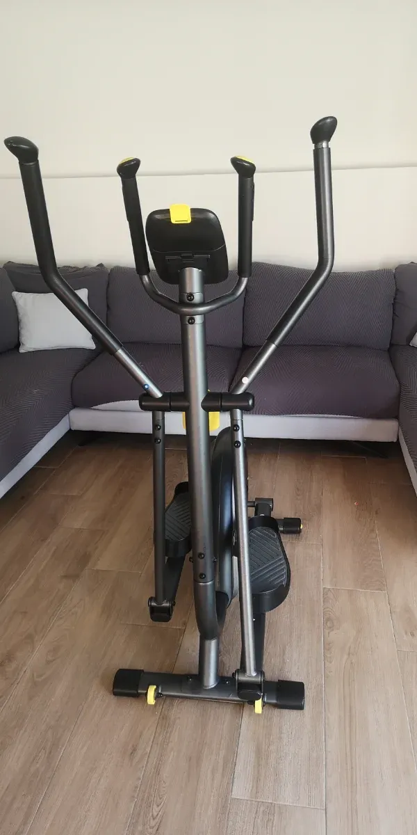 Detalles del productoBicicleta elíptica Domyos EL500 en color gris y detalles en amarillo.
