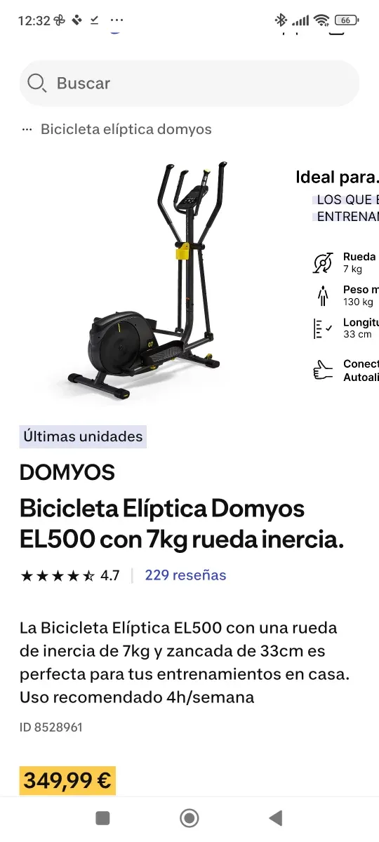 Detalles del productoBicicleta elíptica Domyos EL500 de Decathlon, con muy poco uso. Ideal para entrenamientos en casa.