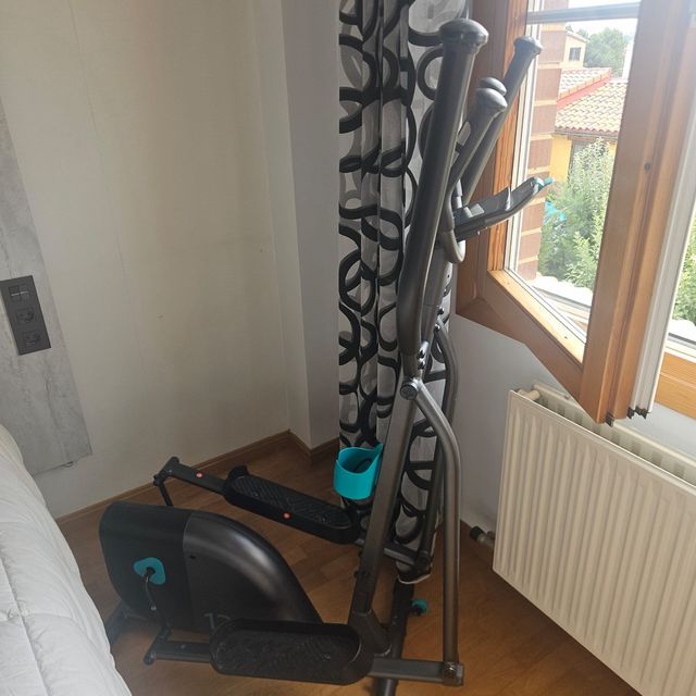 Detalles del productoBicicleta elíptica en buen estado, ideal para entrenar en casa. Su diseño combina tonos grises y negros.