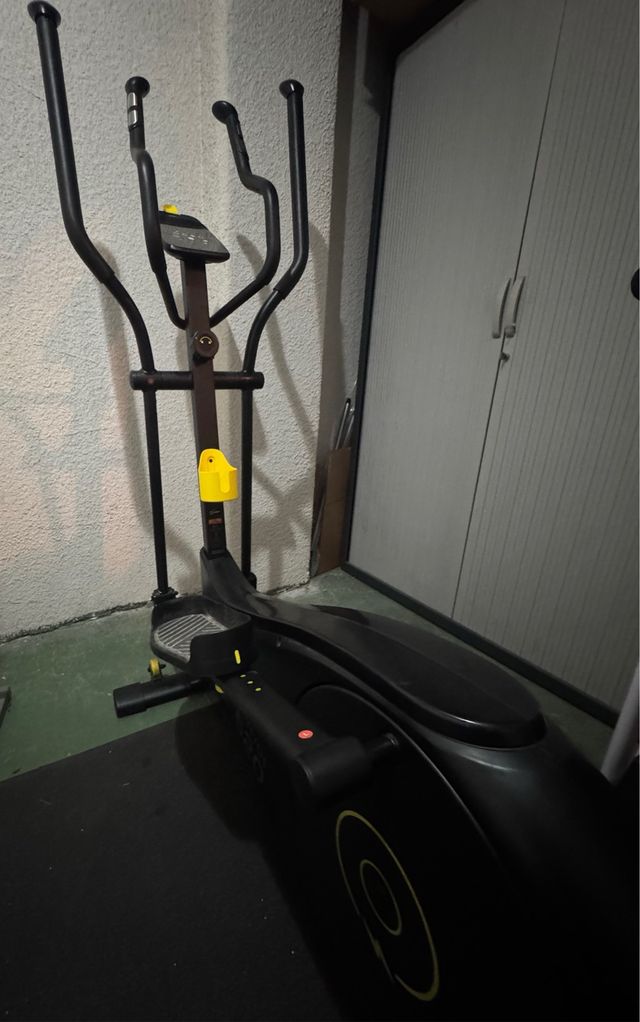 Detalles del productoBicicleta elíptica de color negro, ideal para entrenamientos en casa. Su diseño compacto la hace fácil de integrar en cualquier espacio.