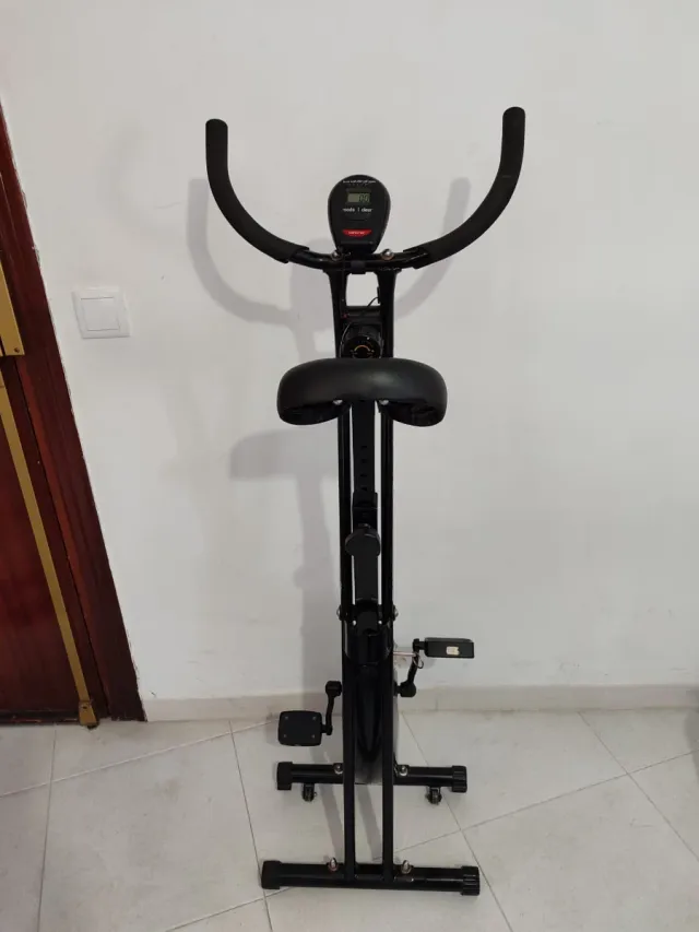 Bicicleta elíptica de color negro, ideal para entrenamientos en casa. - Diseño compacto. - Pantalla para seguimiento de ejercicio. - Pedales antideslizantes.