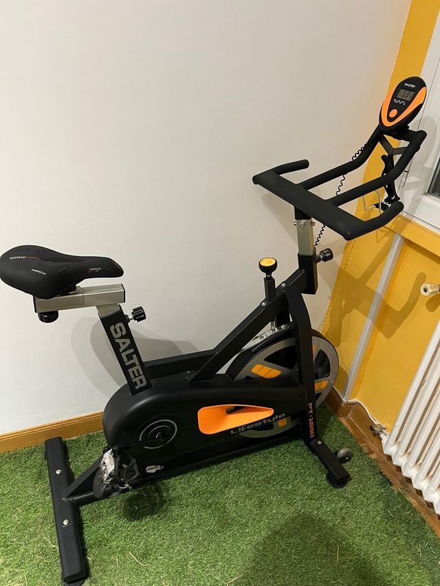 Detalles del productobicicleta estatica salter pt 1690 , 530 kms lleva, la compre hace 2 años, y no la uso mucho, lo unico q tiene mal son los ruedines de trasnporte q estan roidos por mi conejo y tb una cinta del pedal, pero eso no vale nada, a malas se lo puedo cambiar yo y poner nuevo