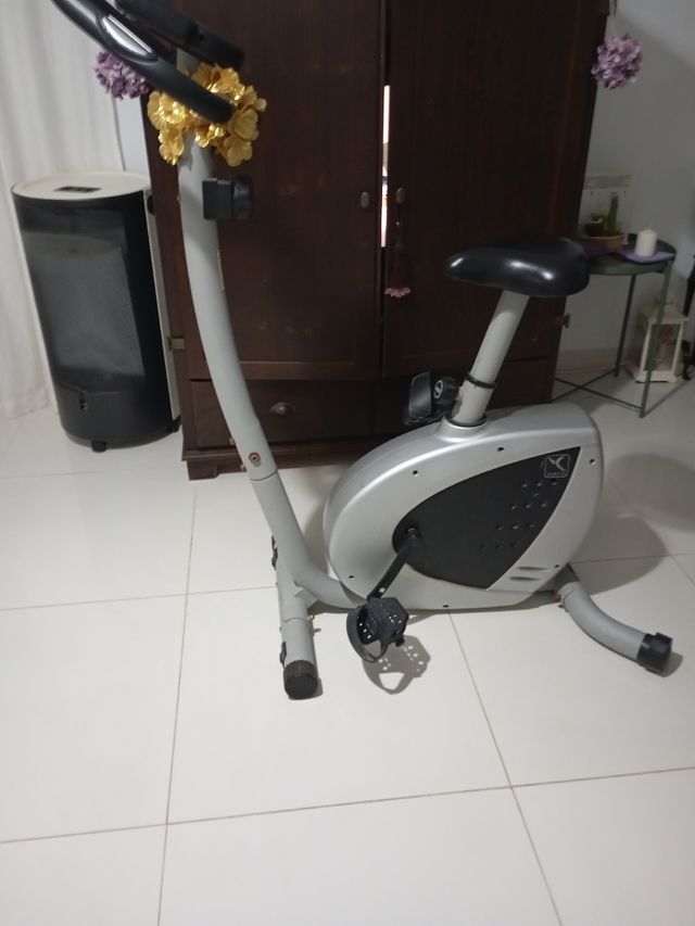 Detalles del productoBicicleta estática decathlon. La bicicleta funciona perfectamente con 6 posiciones de esfuerzo. Manillar y sillín regulable. LA PANTALLA ELECTRÓNICA NO FUNCIONA POR LO QUE NO TIENE CUENTA KILÓMETROS, CALORÍAS...