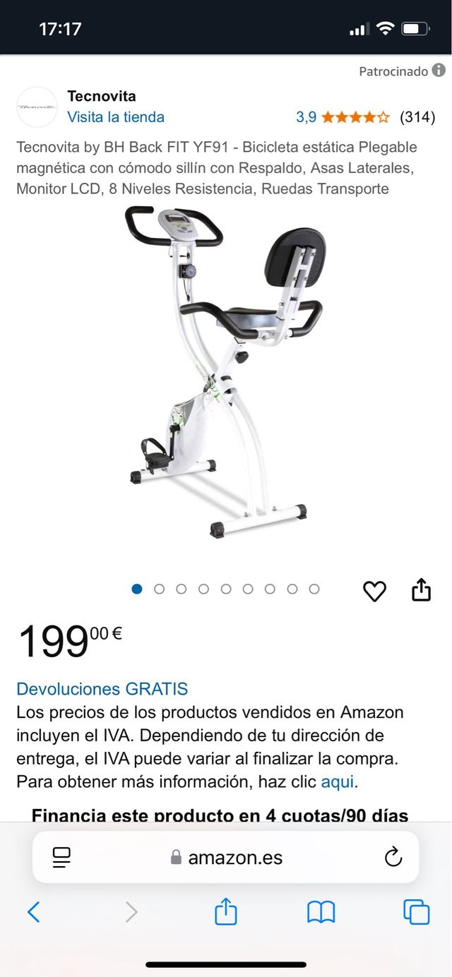 Bicicleta estática plegable Tecnovita de BH, sillín con respaldo, asas laterales, 8 niveles resistencia, ruedas transporte. Signos de uso pero funciona estupendamente