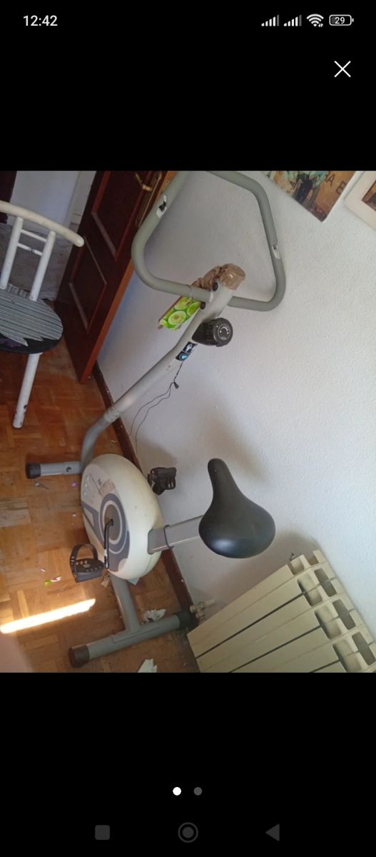 Bicicleta estática para ejercicio en casa. - Diseño compacto. - Asiento ajustable. - Pedales con agarre.