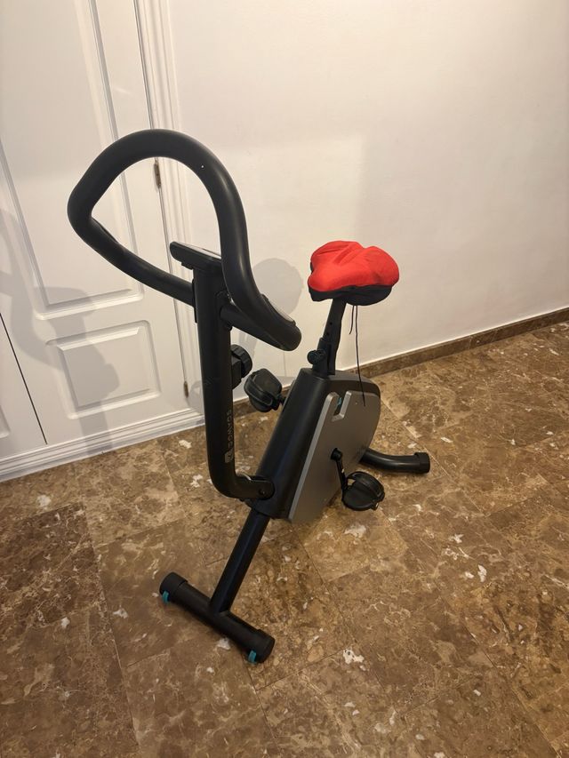 Detalles del productoBicicleta estática. Marca Domyos modelo essential 2 04. En perfecto estado de funcionamiento, único desperfecto pequeña marca en el sillín. Se entrega con cubre sillín rojo. NO SE HACEN ENVÍOS