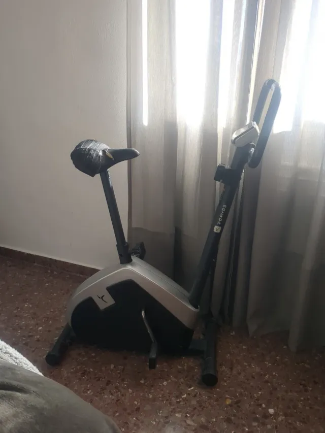Bicicleta estática para ejercicio en casa. - Diseño moderno y compacto. - Asiento ajustable. - Manillar ergonómico.