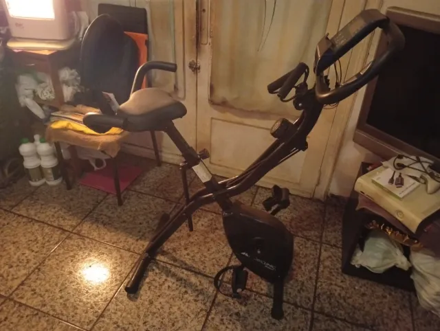 Bicicleta estática para ejercicio en casa. - Diseño compacto y funcional. - Asiento ajustable. - Manillar ergonómico.