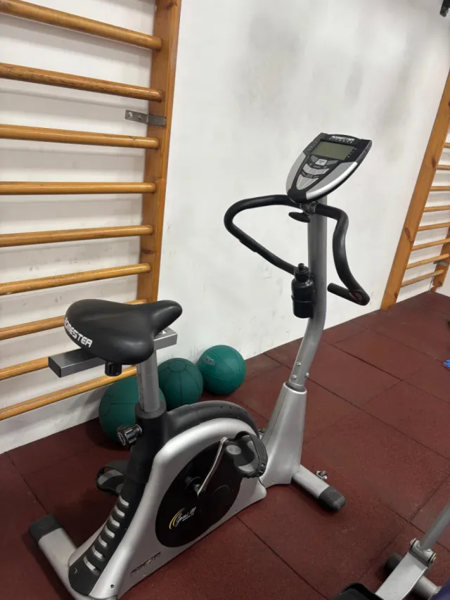 Detalles del productoBicicleta estática marca Forester, ideal para entrenamientos en casa. Su diseño compacto la hace fácil de ubicar.