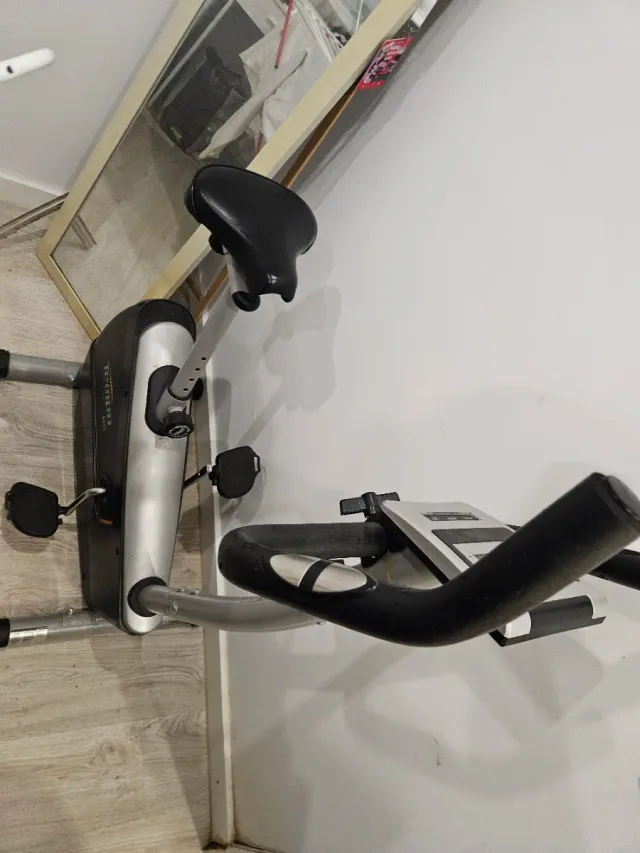 Bicicleta estática para ejercicio en casa. Diseño moderno y funcional. - Asiento acolchado. - Manillar ergonómico. No funciona la pantalla pero lo de cambiar la fuerza si