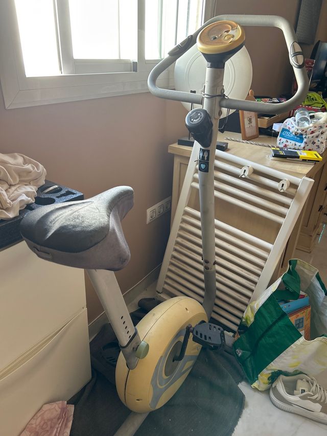 Bicicleta estática para ejercicio en casa. - Diseño en color amarillo y gris. - Asiento ajustable. - Manillar ergonómico.