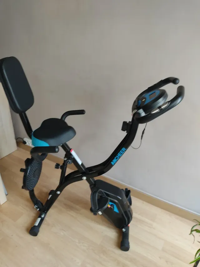 Detalles del productoBicicleta estática plegable ANCHEER, ideal para entrenar en casa. Cuenta con un diseño compacto y fácil de almacenar.