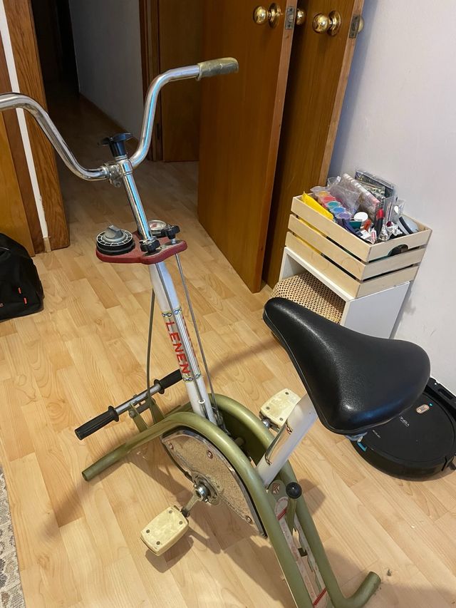 Detalles del productoBicicleta estática de estilo vintage, ideal para ejercitarse en casa. Su diseño clásico la hace destacar.