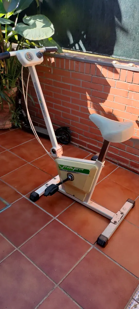 Bicicleta estática de la marca BH en color blanco. Ideal para hacer ejercicio en casa. - Diseño compacto. - Asiento ajustable. - Pedales con agarre.