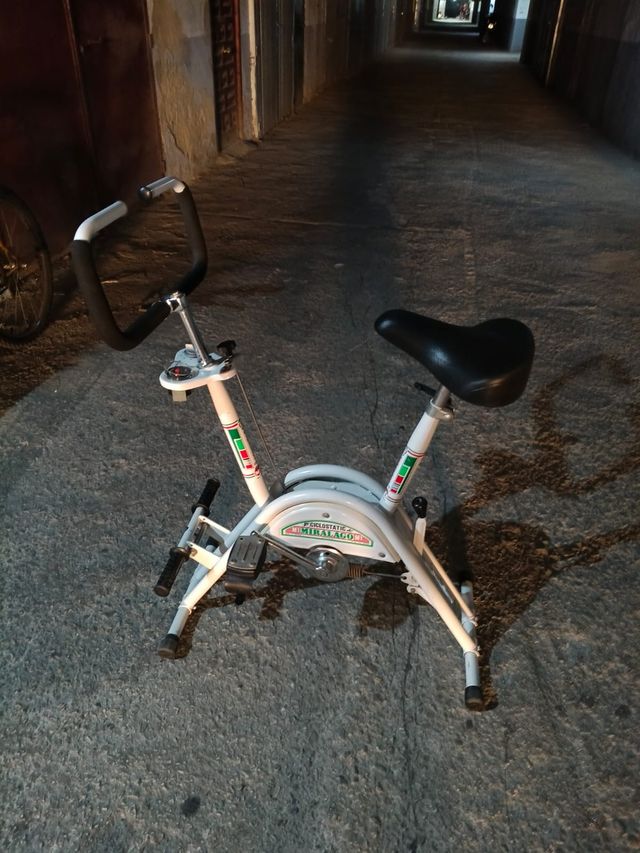 Bicicleta estática de diseño clásico en color blanco. Ideal para hacer ejercicio en casa. - Estructura robusta. - Asiento cómodo. - Pedales con agarre.