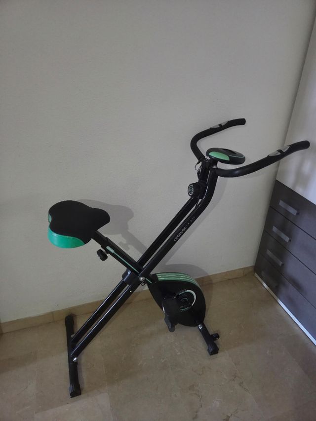 Detalles del productoBicicleta estática Cecotec en color negro y detalles en verde.