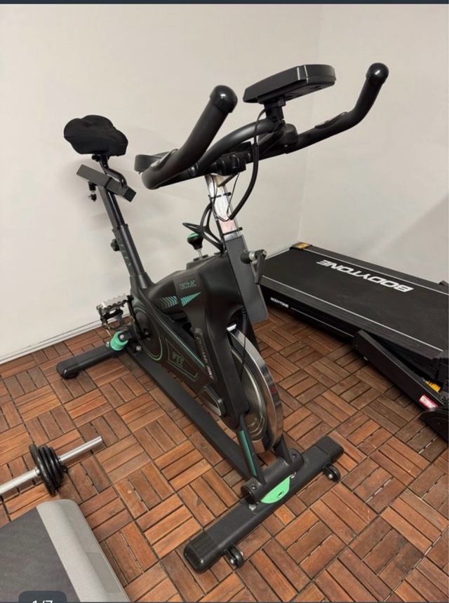 Detalles del productoBicicleta estática de la marca Cecotec, ideal para entrenamientos en casa. Su diseño moderno y compacto la hace perfecta para cualquier espacio.