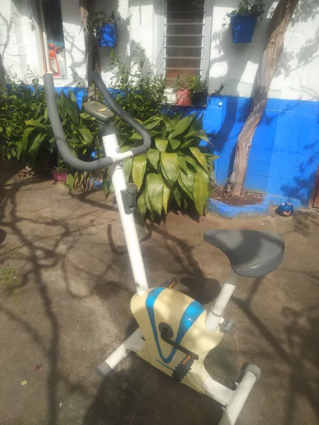 Detalles del productoBicicleta estática con algunos años de uso, ideal para mantenerte activo en casa. Su diseño es funcional y se adapta a diferentes rutinas de ejercicio