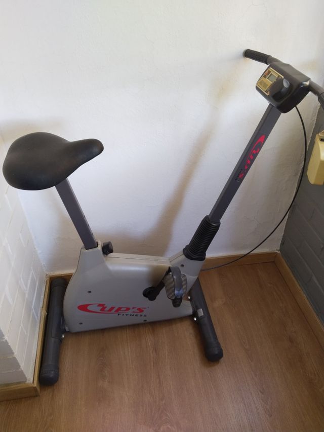 Detalles del productoBicicleta estática de la marca Cups Fitness, ideal para entrenar en casa. Su diseño compacto la hace fácil de ubicar.