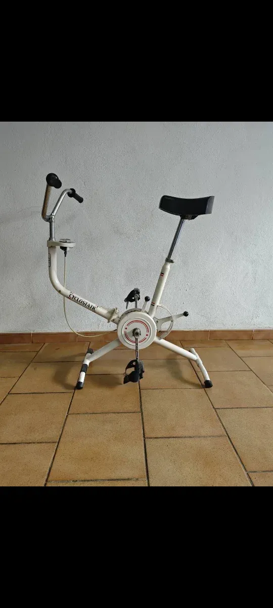 Detalles del productoBicicleta estática de la marca Cyclostatic, un modelo antiguo con un diseño clásico.