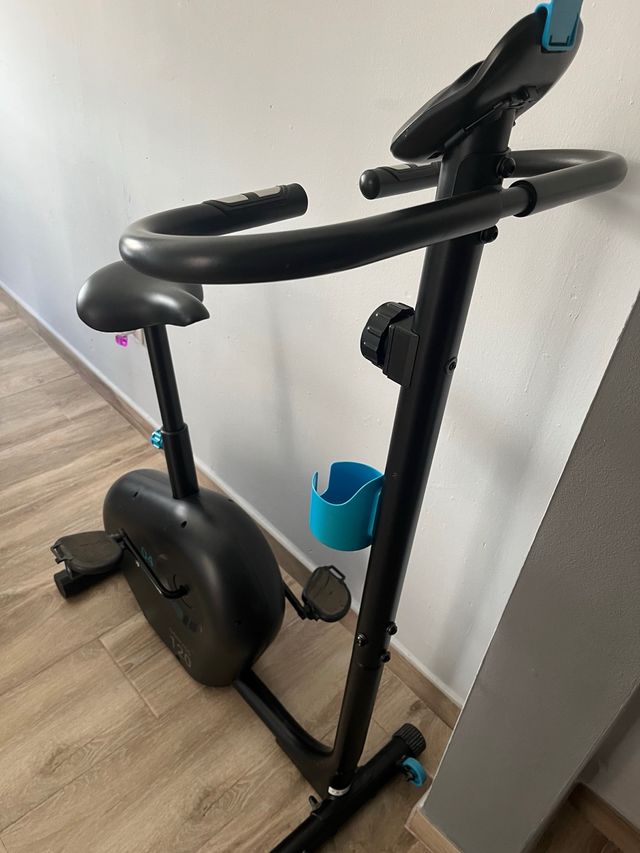 Detalles del productoBicicleta estática de Decathlon, ideal para entrenamientos en casa. Su diseño compacto la hace fácil de integrar en cualquier espacio.