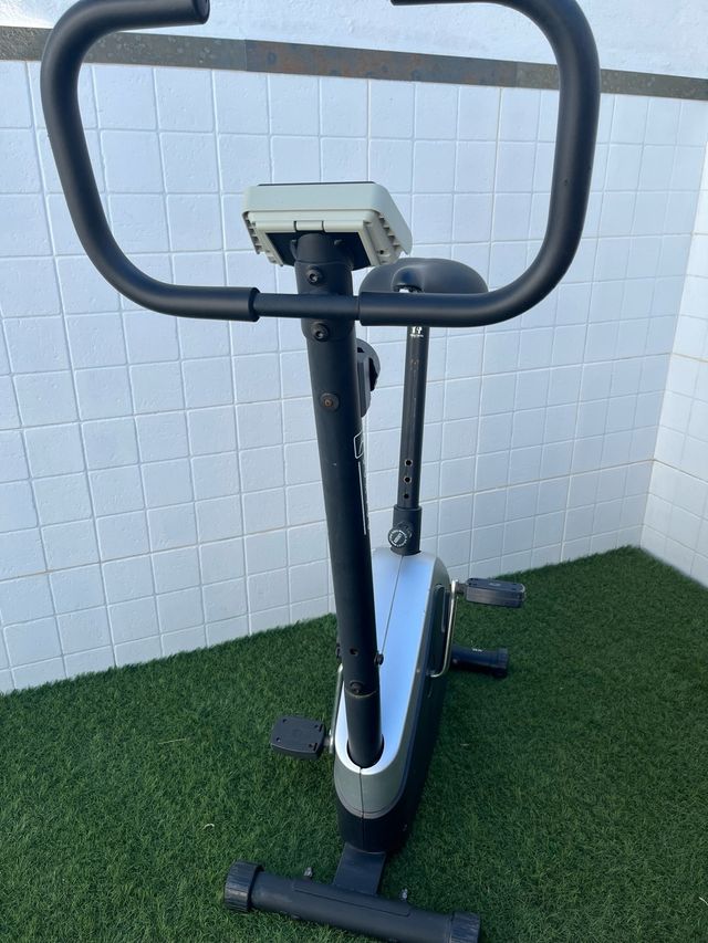 Detalles del productoBicicleta estática de la marca Domyos, ideal para entrenamientos en casa. Su diseño es compacto y funcional.