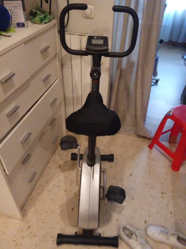 Detalles del productoBicicleta estática de la marca Domyos, ideal para entrenamientos en casa.