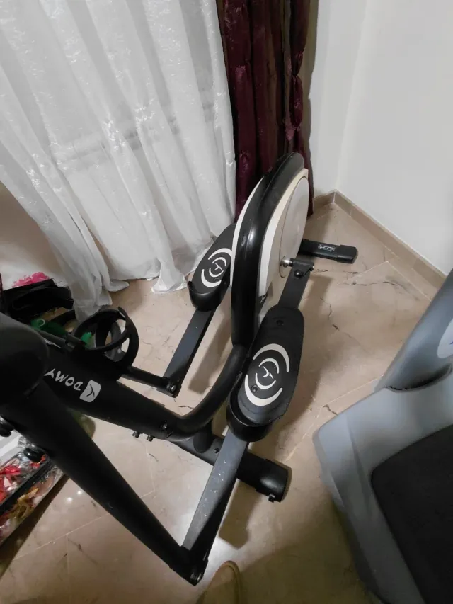 Bicicleta estática en muy buenas condiciones. - Marca DOMYOS. - Diseño moderno en color negro y blanco. - Pedales con agarre.