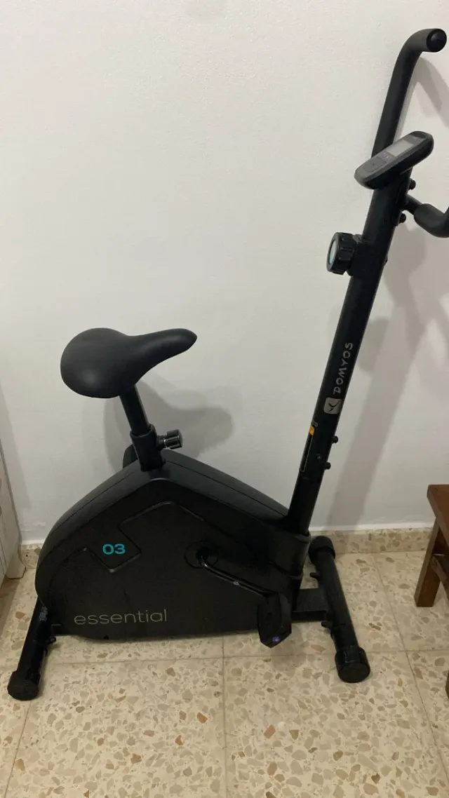Detalles del productoBicicleta estática Domyos Essential 03 en color negro. Diseñada para entrenamientos en casa.