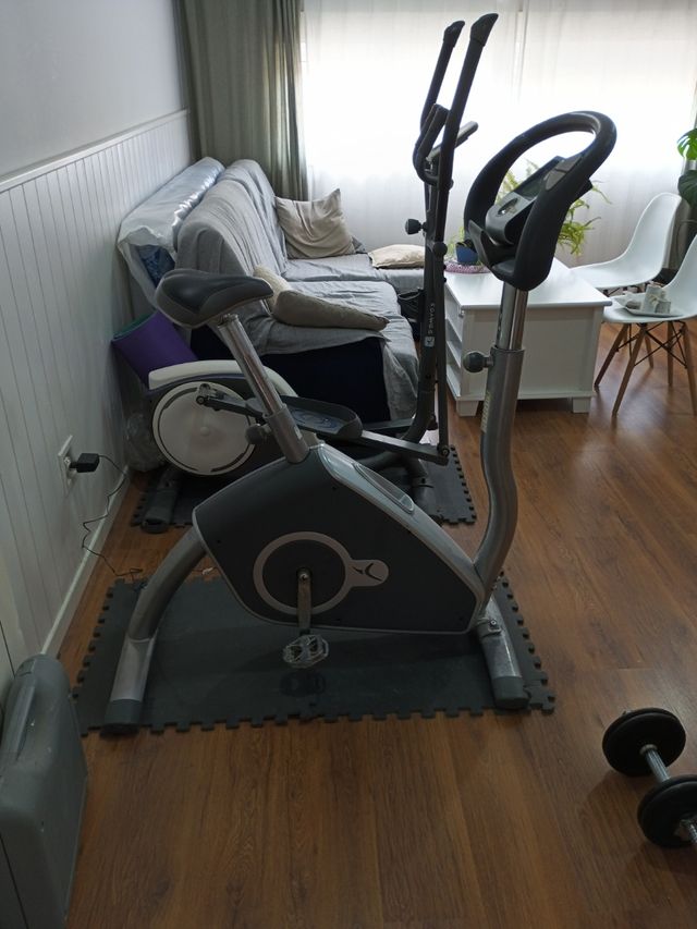 Detalles del productoBicicleta estática y elíptica Domyos