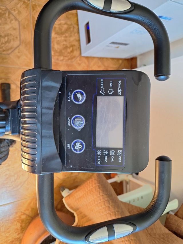 - Monitor digital que muestra velocidad, tiempo, distancia, calorías quemadas y pulso.