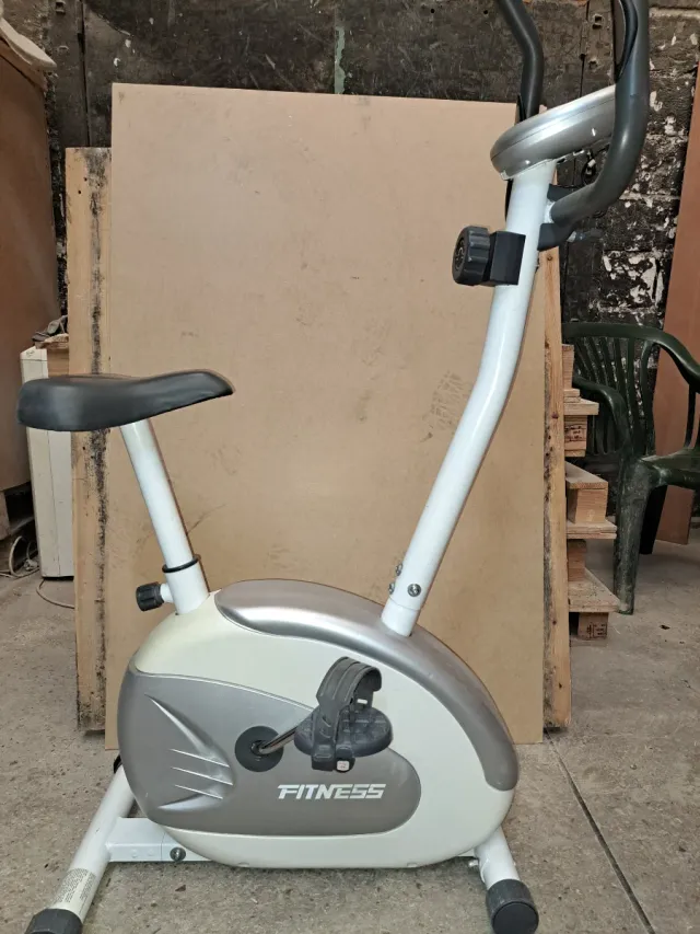 Detalles del productoBicicleta estática de la marca Fitness, ideal para entrenar en casa. Su diseño es moderno y compacto.