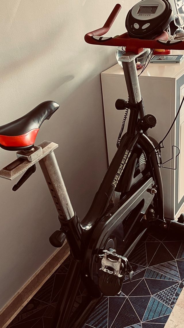 Bicicleta estática en buen estado, ideal para entrenar en casa. - Color negro. - Asiento ajustable. - Pedales con agarre. - Pantalla digital.