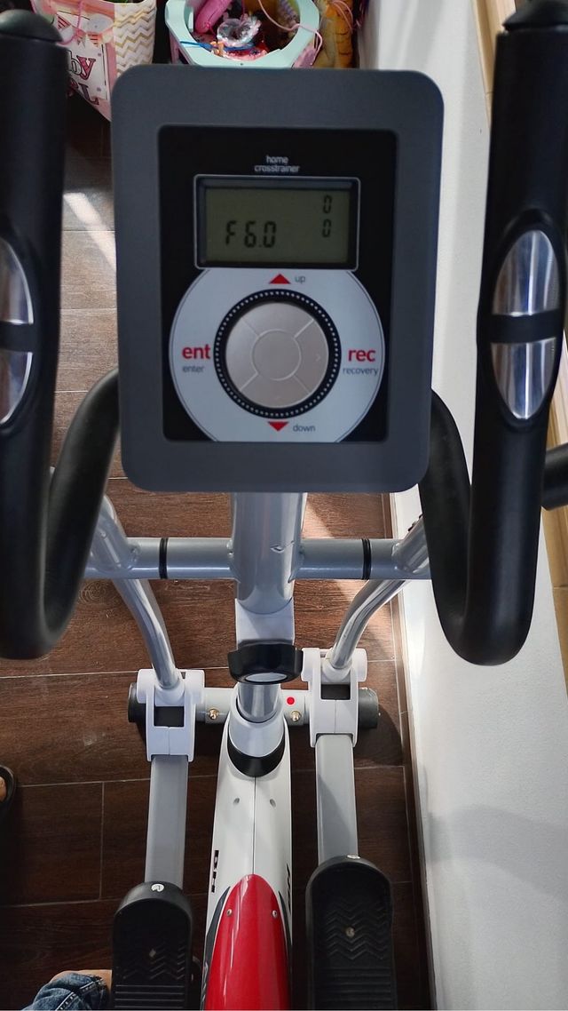 Bicicleta estática NH Cross Trainer con pantalla digital. - Pantalla que muestra datos de entrenamiento. - Diseño moderno y compacto.