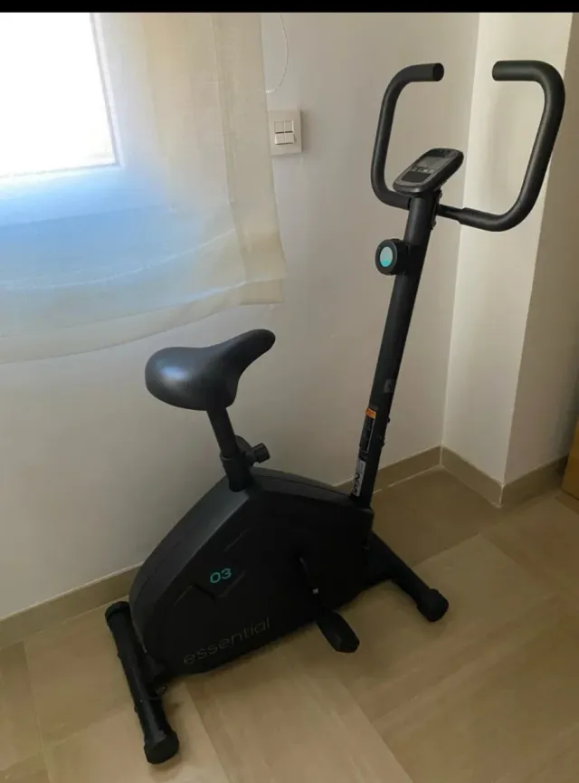 Bicicleta estática de la marca O3, modelo Essential. - Diseño en color negro. - Pantalla digital integrada. - Manillar ergonómico.