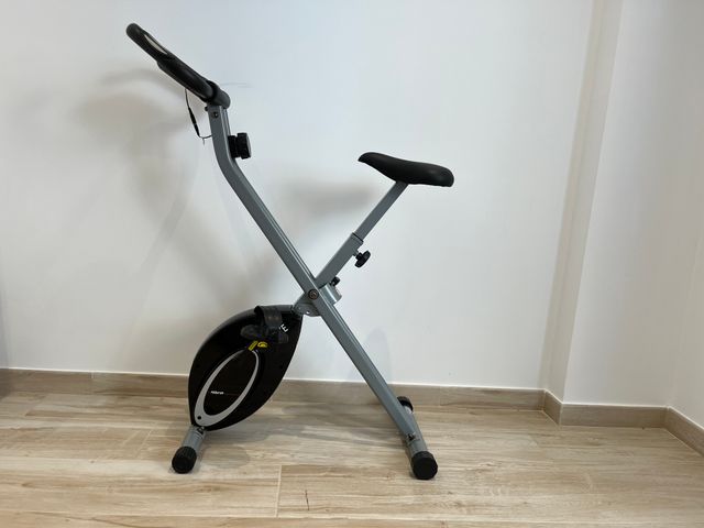 Detalles del productoBicicleta estática plegable con pantalla LCD de entrenamiento integrada, sensores de pulso y 8 niveles de resistencia. El sillín es ancho, acolchado y ajustable en altura que junto con el manillar elevado ofrecen una posición ergonómica que cuida las rodillas y la espalda.