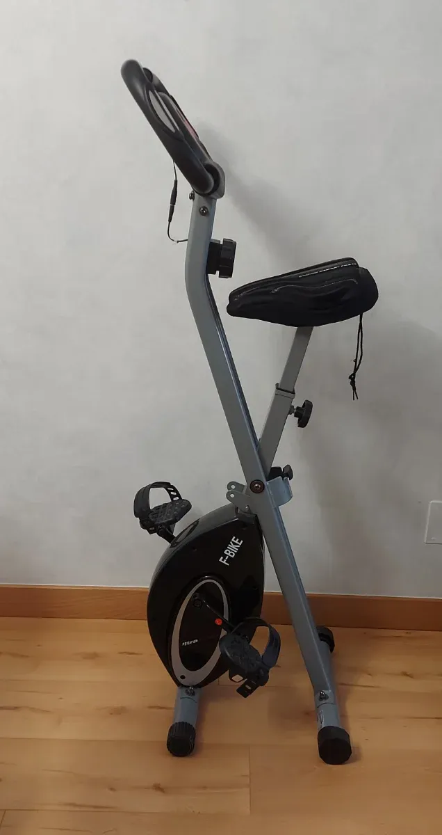 Bicicleta estática de diseño plegable, ideal para entrenar en casa. - Estructura metálica. - Asiento acolchado. - Pedales con sujeción. - Pantalla digital.