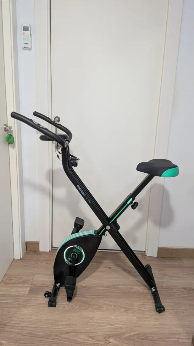 Detalles del productoCecotec Bicicleta Estática Plegable con Volante de Inercia de 2,5 Kg X-Bike. Sistema Silence Fit, Ergonómica, Manillar y Sillín Regulable, Pulsómetro, Pantalla LCD, Ruedas, Peso máximo 100 Kg.