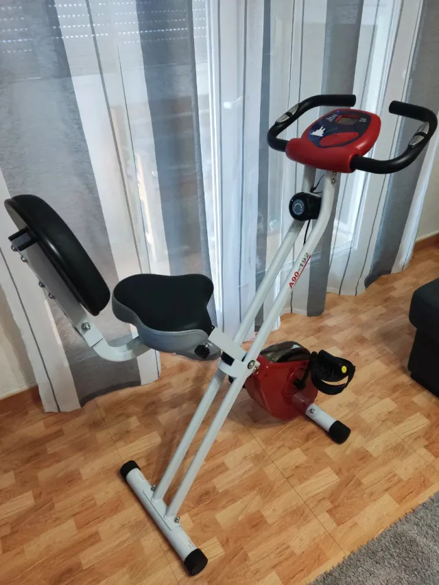 Bicicleta estática de diseño reclinado, ideal para ejercitarse en casa. - Asiento con respaldo. - Pedales con agarre. - Pantalla digital integrada.
