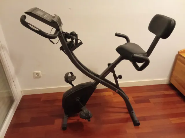 Detalles del productoBicicleta estática de tipo reclinado, diseñada para un entrenamiento cómodo en casa. Su estructura es plegable, facilitando su almacenamiento.